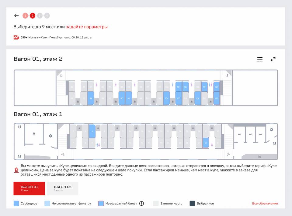 - В схеме вагона при выборе места