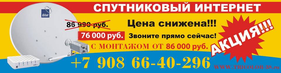 - Оборудование: антенна 0.6-1.2 м, двухсторонний модем