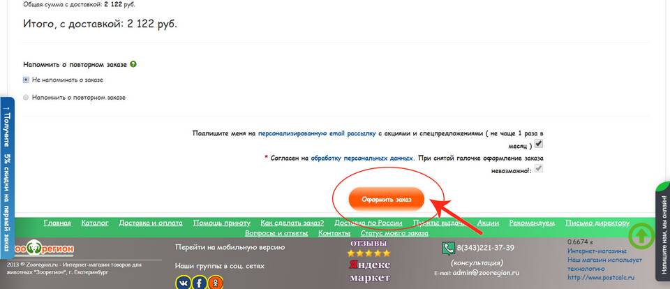- Система зафиксировала ваш выбор товаров и способ оплаты