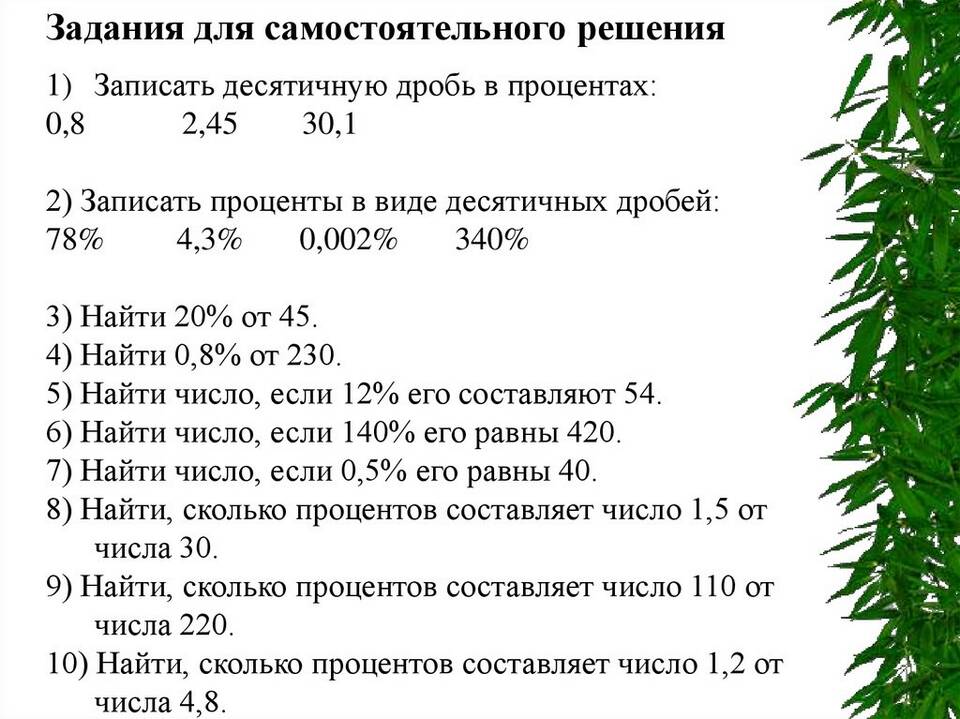 - Всегда проверяйте, чтобы процент не превышал 100% в задачах на нахождение части