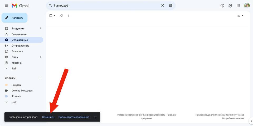 Отмена в Gmail