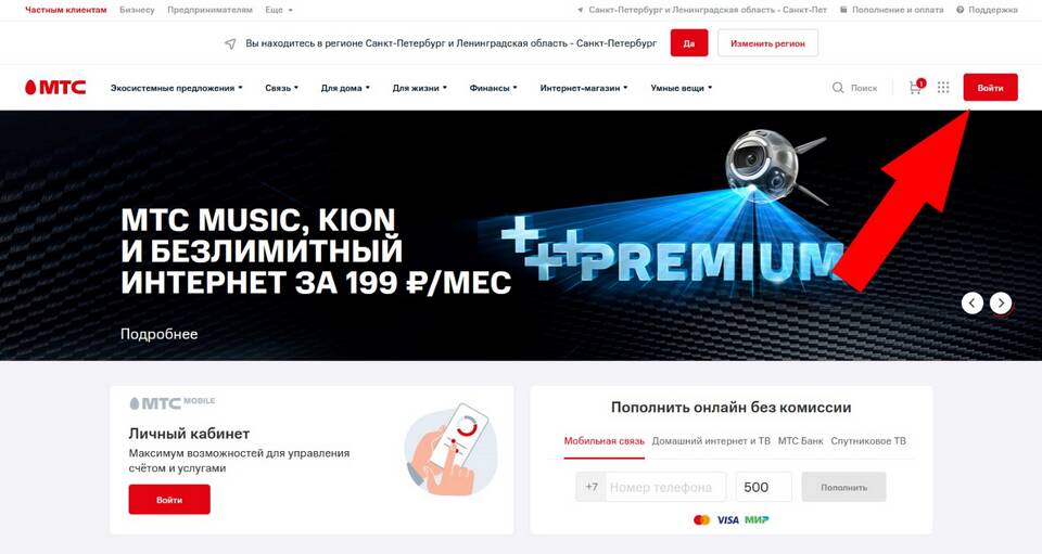 - Авторизуйтесь в личном кабинете на сайте mts.ru